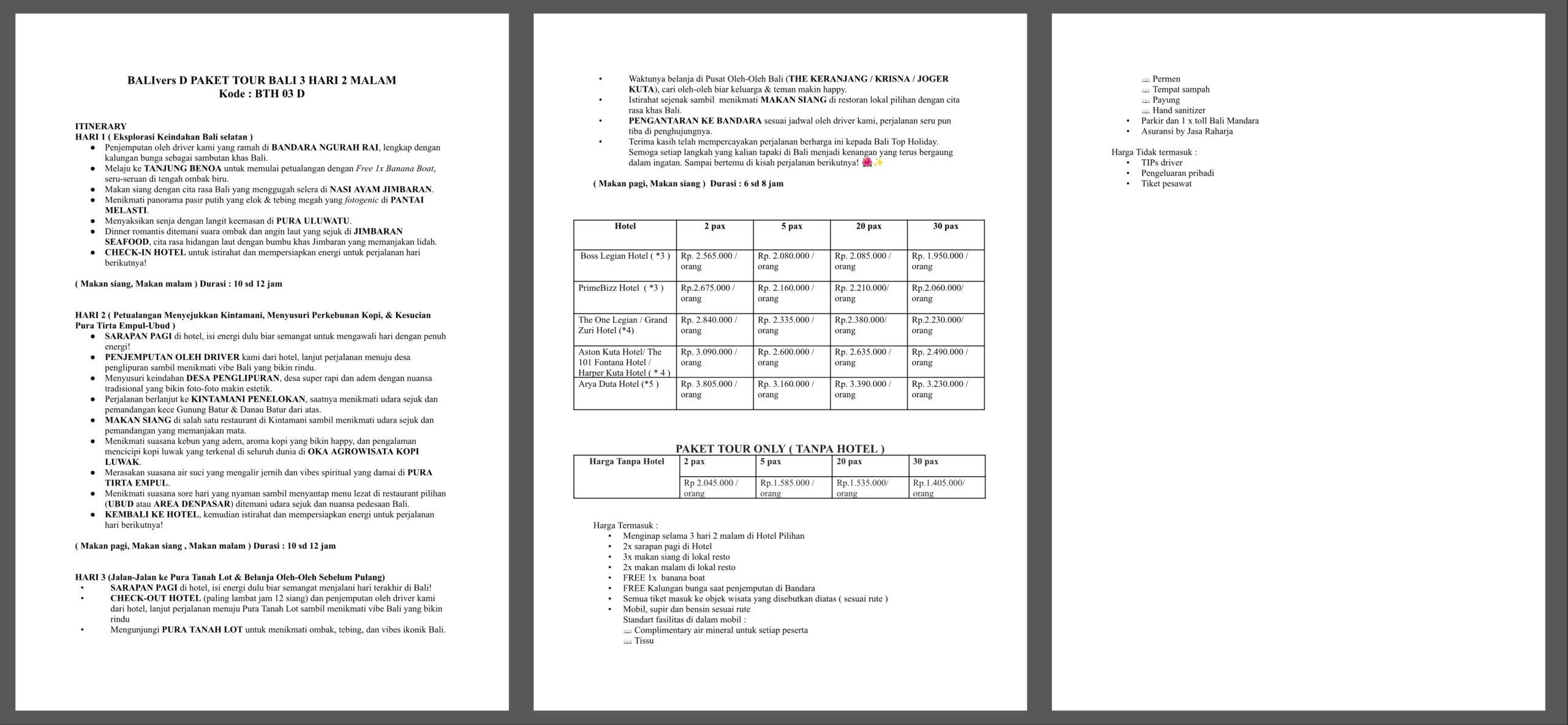 | 3 Hari 2 Malam | BTH 03 D | Rp 2.085.000 | Rp 1.535.000 |
